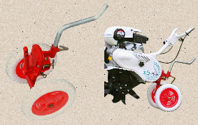 | 特徴 | ミニ耕うん機の後方に装着して、耕うんした跡をきれいに整地します。整地板のゴム板の反転で凹凸にも平らにも仕上がります。作業幅はMFR30A、ELF20は56cm、MM300E/Aは70cmです。 |