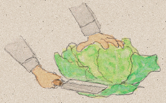 中心部の芽が内側に巻き始めてから20~30日経った頃が収穫期です。結球が固く締まったものから順に、株元から包丁で切り取って収穫します。