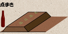 栽培する野菜に適した株間をとり、その位置にビンなどでまき穴をつけておく。