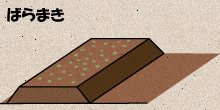 深さ0.5~1cmのまき溝をつけ、そこにタネをまく。