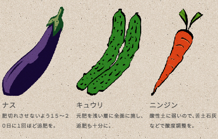 生育期間の長い野菜は、元肥として施した肥料成分が吸収されたり、雨で流出して肥料切れになってきます。そこで、生育状態を見ながら追肥し、成長を促します。肥料は根の先端で吸収されるので、根張りを確かめ、根の先端付近の表土に施して土にすき込みます。