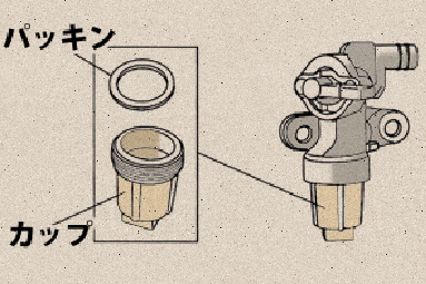 燃料ストレーナのカップ部分に水やゴミが溜まっていたら掃除しましょう。