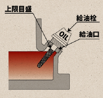 給油栓をはずし、油量が規定の位置まであるかを調べます。