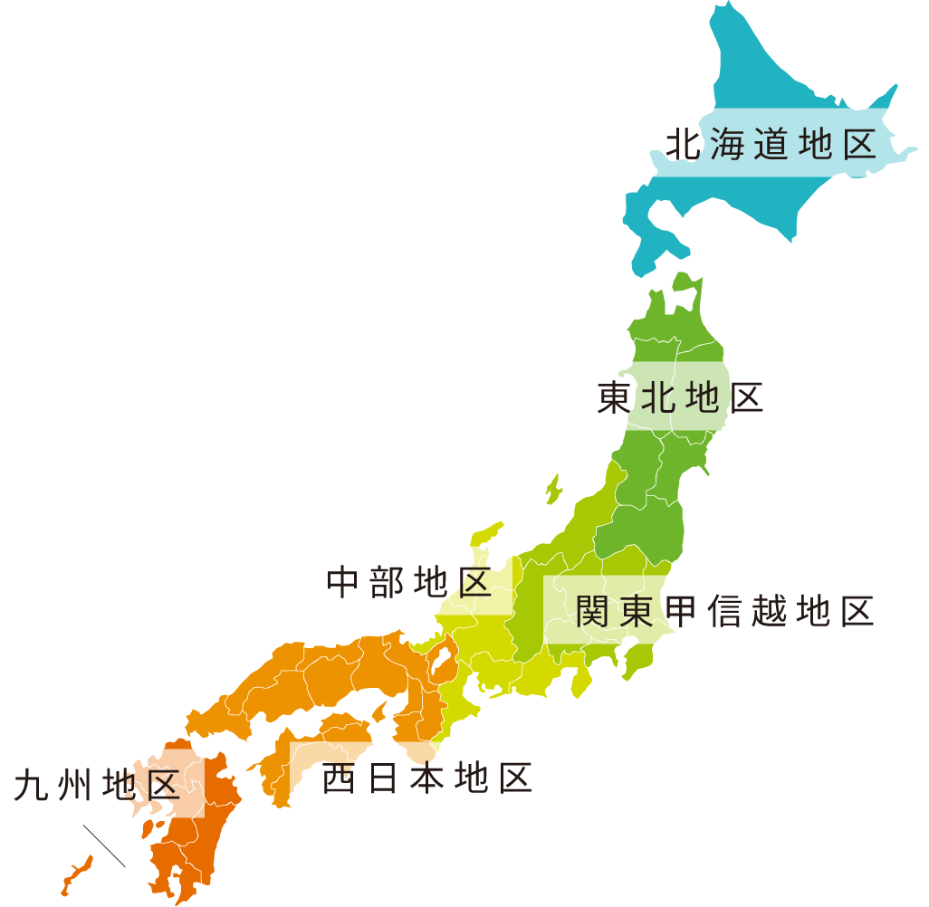 全国をカバーする6地区の支社と各地区の特約店のネットワークにより