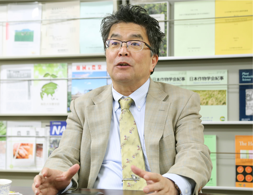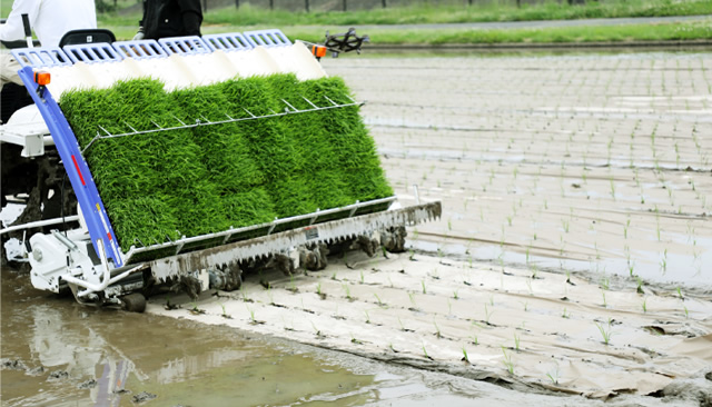 米を作る上でこだわりたいのが薬剤を使わない酒米づくり。当大学では古くから薬剤を使わず除草を軽減できるマルチ水稲移植栽培法の研究を続けており、移植法の機械化にあたり地元山陰の三菱農機(現:三菱マヒンドラ農機)との共同開発が始まりました。その縁が今回の協力に繋がっています。
