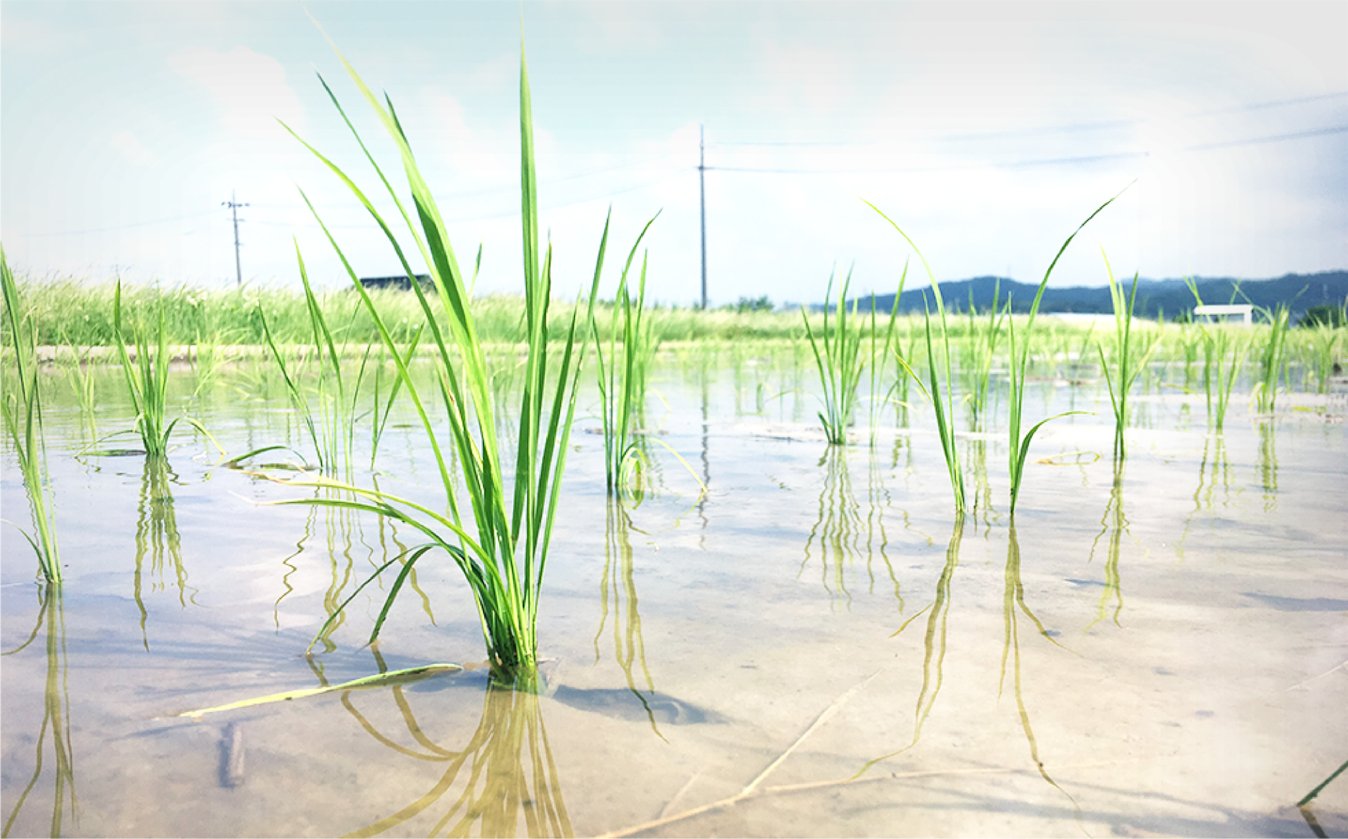 田植え後はすぐに田んぼに水を入れて管理をします。しっかりと水を張って管理することで、根付きと分けつを促し、再生紙を水で押さえて飛ばないようにします。稲の育成には水の管理が欠かせません。
