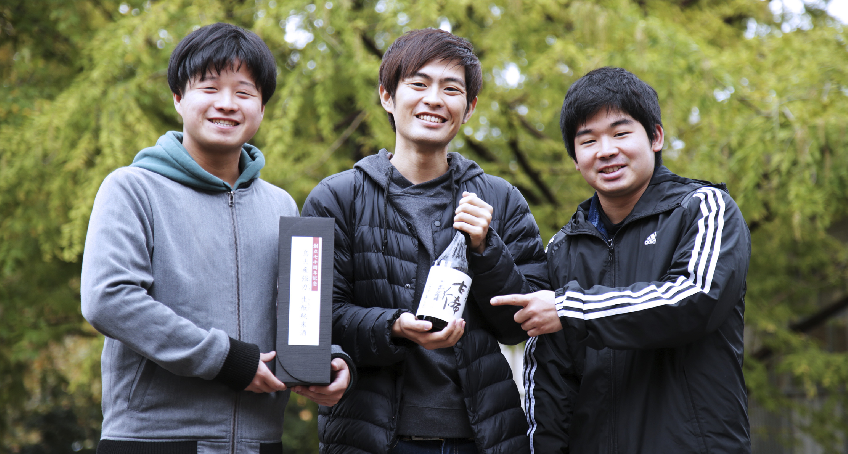 2018年に学生さんたちが育てた酒米を、地元の蔵元が醸した記念酒がついに完成。鳥取大学創立70周年記念酒の名前は、大学が70歳を迎えたことを祝うとともに、次代へ新たに飛躍できるように、との願いが込められ『鳥大古希新(とりだいこきあらた)』と名付けられました。一度は姿を消した酒米『強力(ごうりき)』を無農薬で栽培し、昔ながらの「生酛造り」で仕込みました。今回のプロジェクトを通して感じたことなどを、鳥取大学の面々と、蔵元である山根酒造場の山根社長に伺いました。