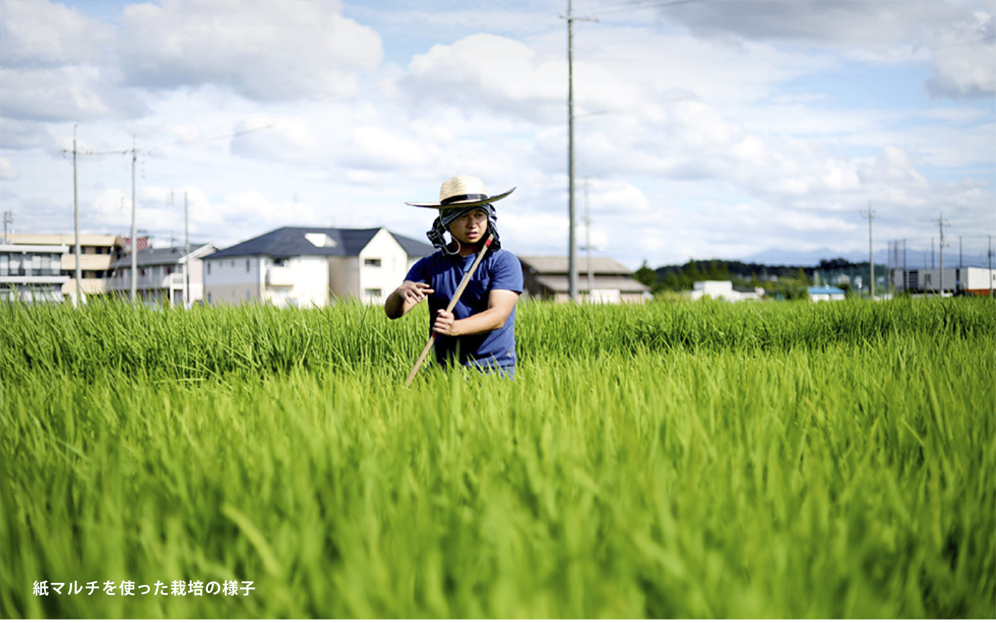 はい。初めてです。紙を敷きながら田植えをするのを見て、「なるほど」と思いましたね。紙で覆われて光が届かないので、雑草が伸びてこないんです。多少破れた部分があり、そこからはすごく雑草が生えていました。それだけ効果があるんだなと実感しましたね。雑草に負けず稲が生長するので、中期以降も雑草の生長が抑制されていました。
